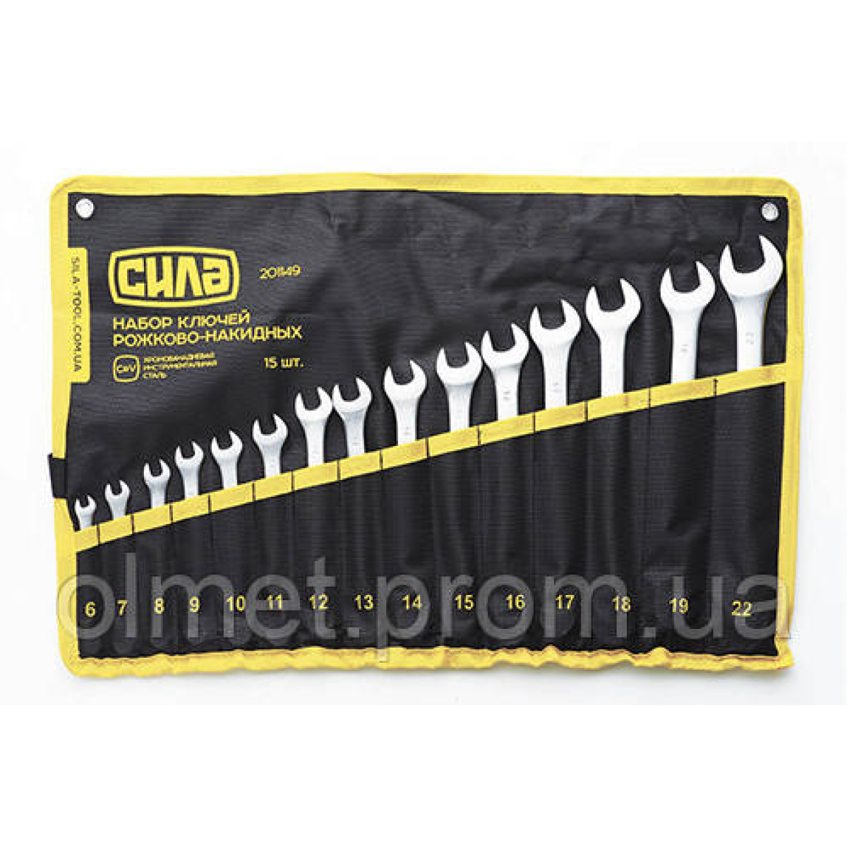 Набор ключей рожково - накидных в чехле CrV 6, 7, 8, 9, 10, 11, 12, 13, 14, 15, 16, 17, 18, 19, 22 (15шт) СИЛА