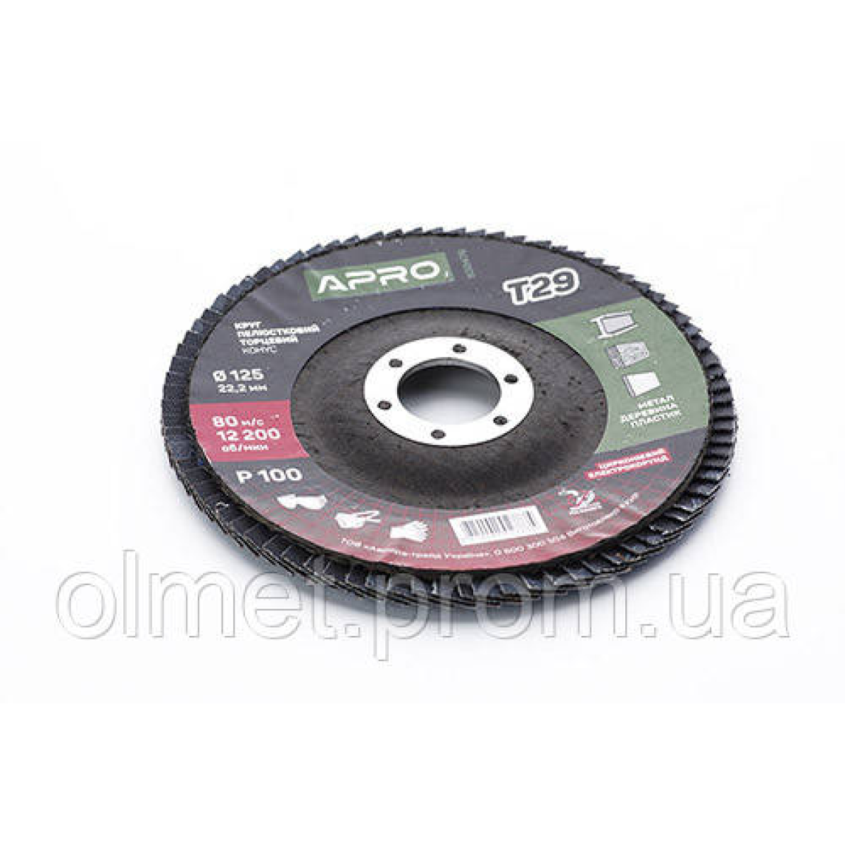 Круг пелюстково-торцевий цирконієвий Р100 конус 125 мм (Т29) (КЛТ) APRO