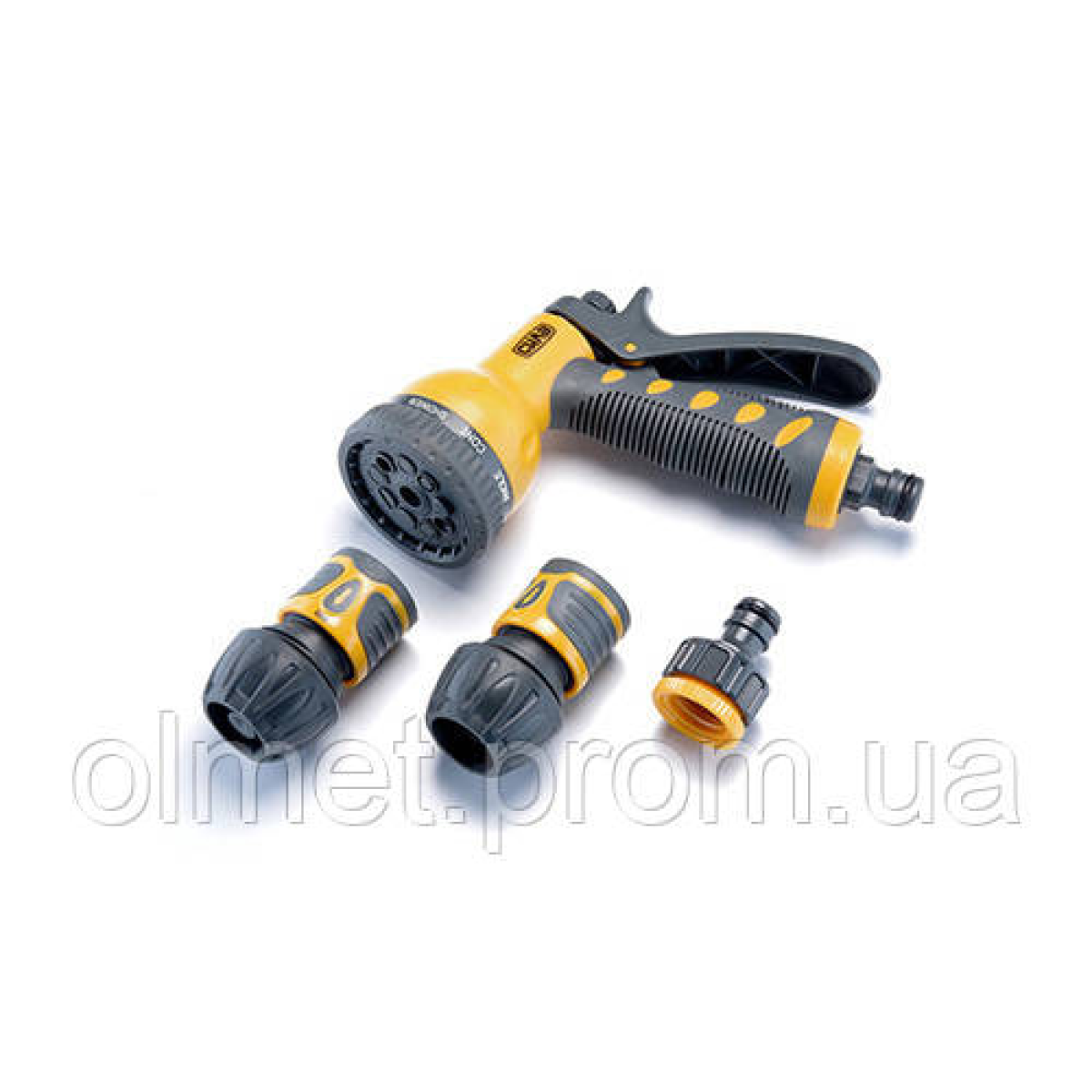 Набір: пістолет-розпилювач 9 режимів, конектори: 3/4 аквастоп, 3/4, адаптер 1/2+3/4 СИЛА