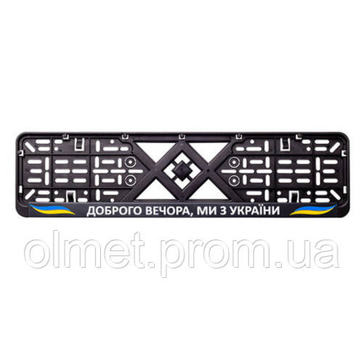 Рамка номерного знака пластик з написом “Доброго вічора, мі з Прикраси“ (планка-засувка) 12 Atelie