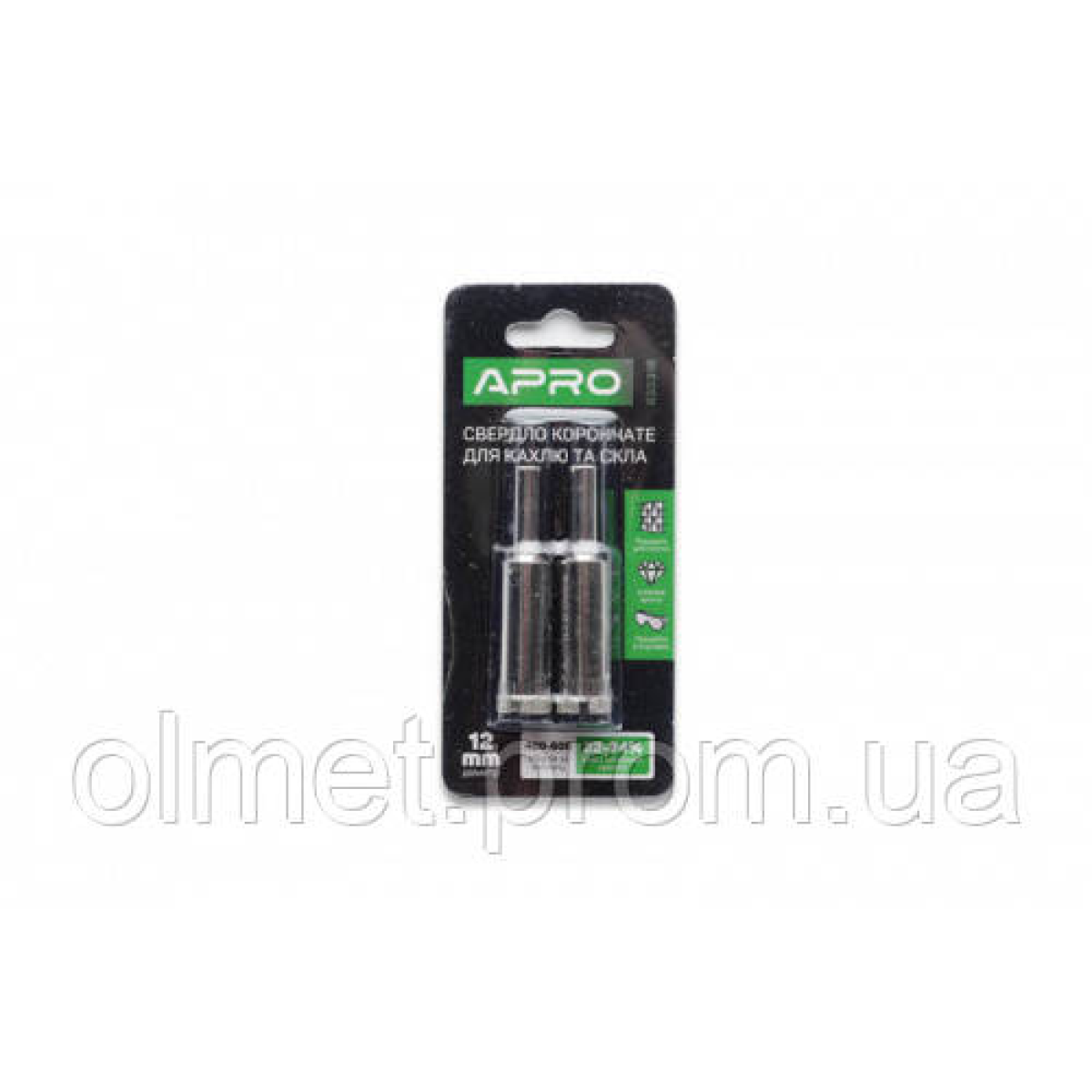 Свердло трубчасте з алмазним напиленням 12 мм (2 шт. у пачці) APRO