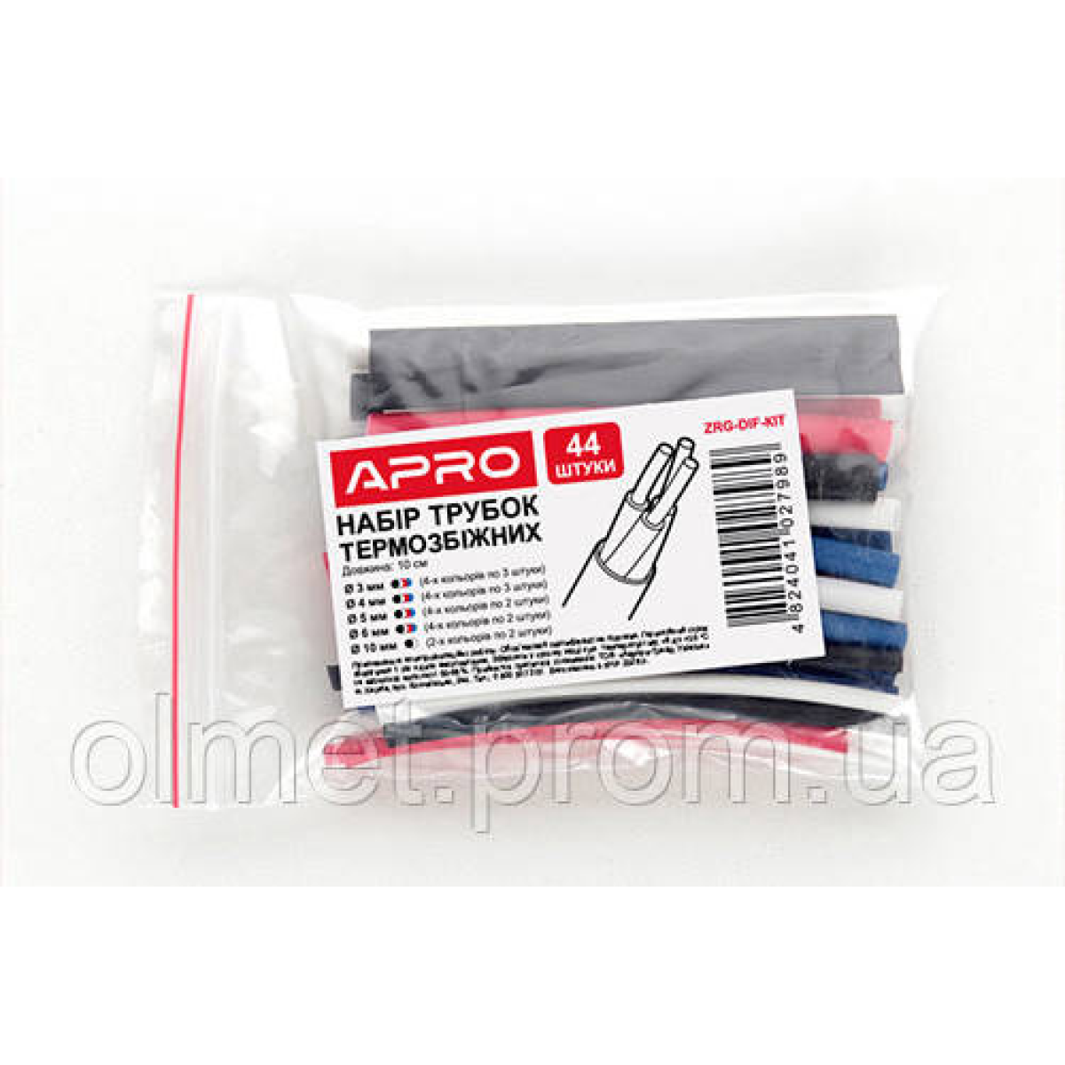 Термоусмоктувана трубка довжина 10 см набір діам. 3, 4, 5, 6, 10 мм (чорні, червоні, сині, білі) (44 шт.) APRO