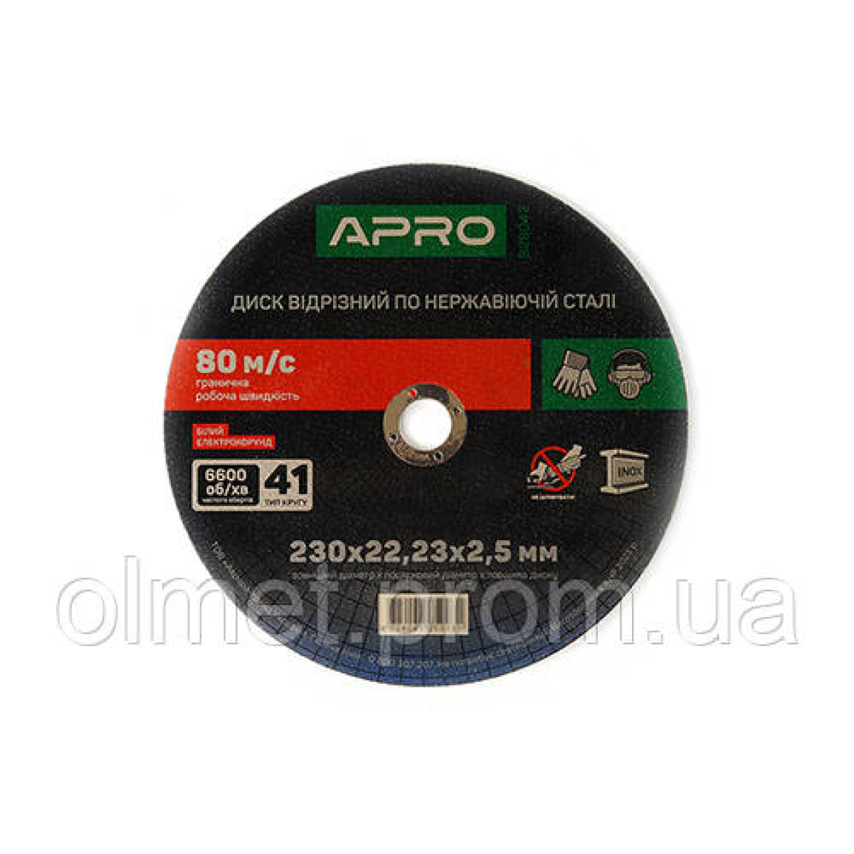 Диск відрізний за неіржавкою сталі (INOX) 230х2.5х22.2 мм (5 шт.) APRO