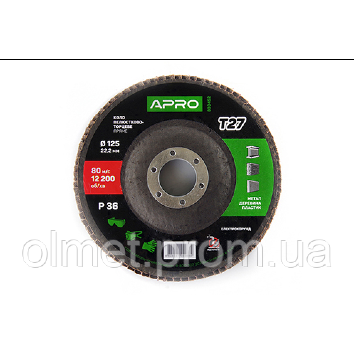 Круг пелюстково-торцевий Р36 прямий 125х22.2 мм (Т27) (КЛТ) APRO