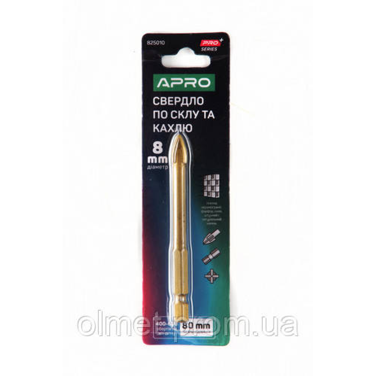 Свердло для скла та кахлю 4 грані HEX 8 мм PRO APRO