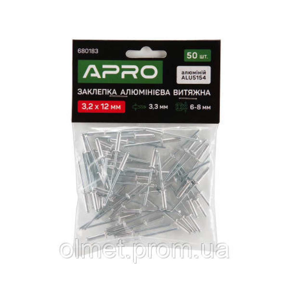 Заклепка алюмінієва витяжна 3.2х6мм 50 шт. APRO